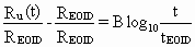 For a soil set-up straight line passing through two points corresponding pile capacity at EOID, REOID, and pile capacity at any time after pile installation, Ru(t), a formula with a logarithmic time scale can be written