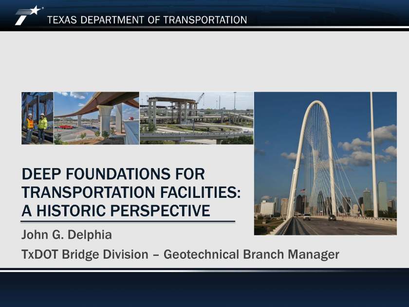 This is a presentation slide show given by Mr. John G. Delphia, Texas Department of Transportation, Bridge Division, Geotechnical Branch Manager. It’s a nice overview of deep foundations for transportation structures, including both drilled shafts (which TxDOT has excelled at since the days of O’Neill and Reese) and driven piles.