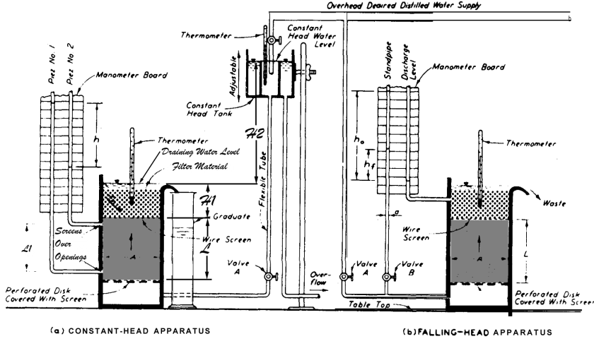 There is a distance H1 from the top of the soil sample to the surface of the water above it. There is an additional distance H2 from that water surface to the water surface of the constant head tank. We’ll do this three ways: