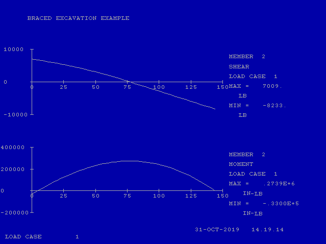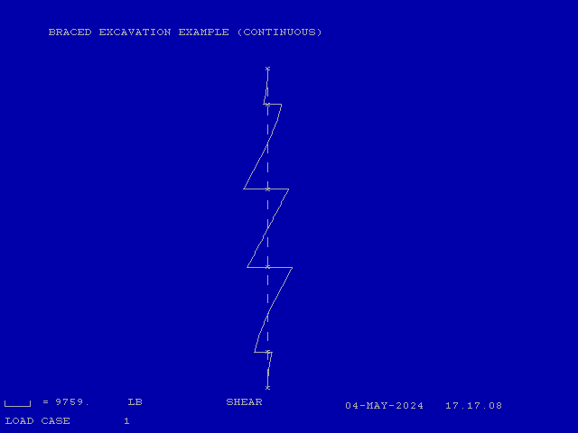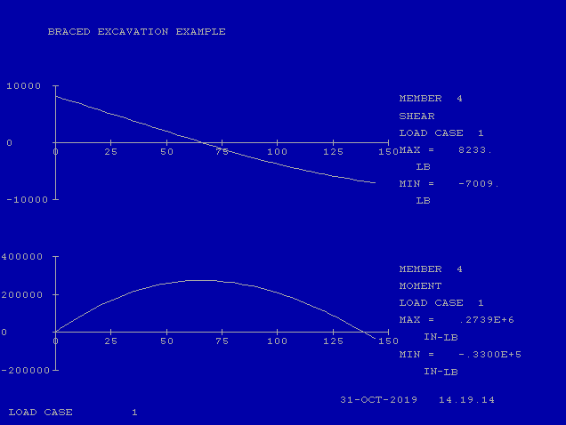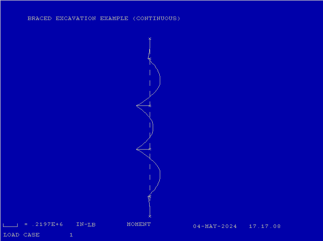 The example below is a simple example in that the supports are symmetrically placed and there is no sheeting toe penetrating the bottom of the excavation. It’s primarily intended to illustrate the concepts, both geotechnical and structural, of the design of these structures.