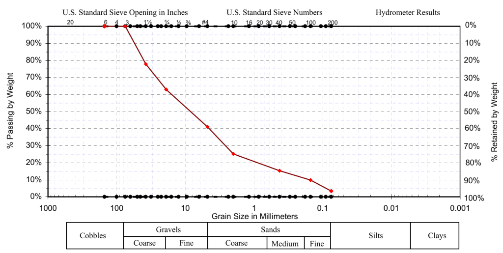 For our last example, let’s do an entire soil classification. The gradation chart looks like this: