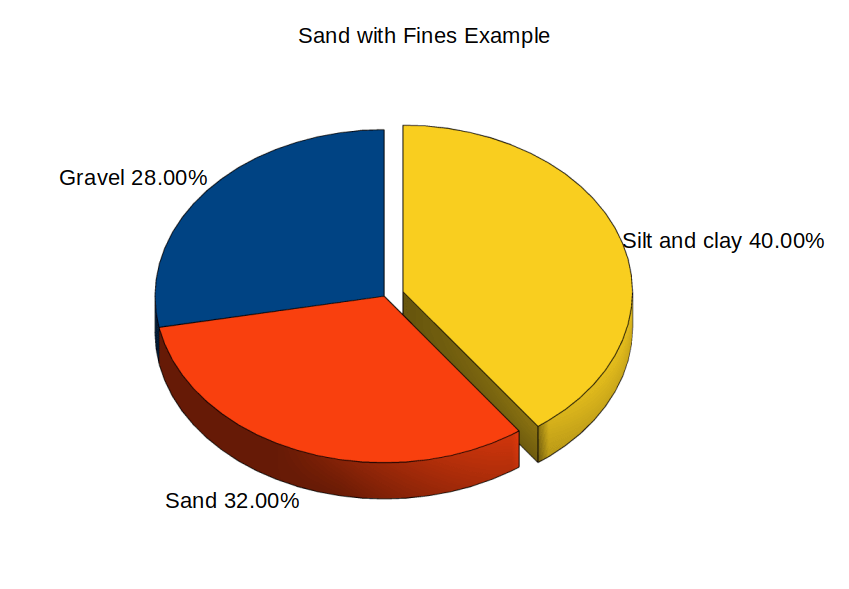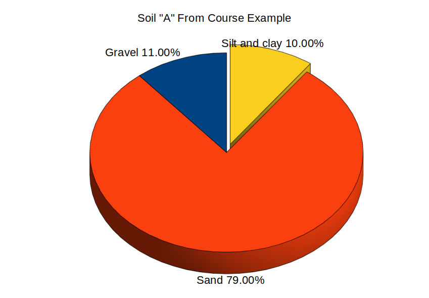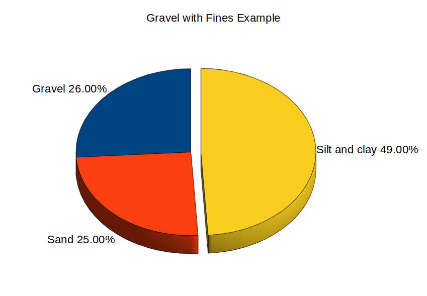 In the process of classifying soils using the Unified System, one of the parts which some students find tricky is the business of the “proportion of the coarse fraction,” i.e., the way we decide if a mostly coarse-grained soil sample is sand or gravel. This is an attempt to illustrate this using a pie chart.