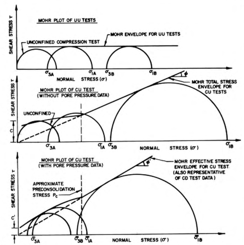 Although uniaxial loading is common in tensile and compressive stresses of materials such as metals and plastics, in geotechnical engineering it is mainly concentrated in two types of tests: Triaxial tests and Unconfined Compression (UC) tests. Since in Mohr-Coulomb theory we use a maximum shear stress to determine the point of failure, and the shear stresses and strains don’t appear in the above equations, an explanation as to how shear stresses and strains apply is reasonable.