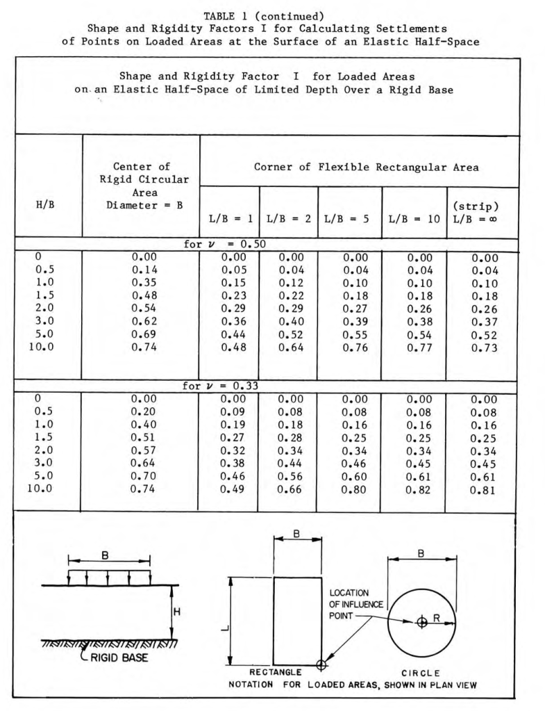 - The NAVFAC DM 7.1 solution is restricted to values of $\nu = 0.5 $. This is unreasonable; this assumes that the soil is a fluid. It also created a singularity in The Equivalent Thickness Method for Estimating Elastic Settlements.