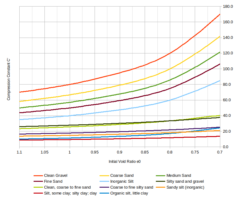 Compression constant typical values aren’t exactly plentiful. This table, from Verruijt, is one I have put in my course materials for many years (for log10 formulations):